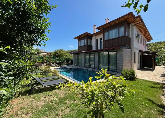 Вилла Derya Beach Agullu Villa 4 предлагает сезонный бассейн под открытым небом, 2 спальни, а также патио, откуда открывается вид на бассейн.